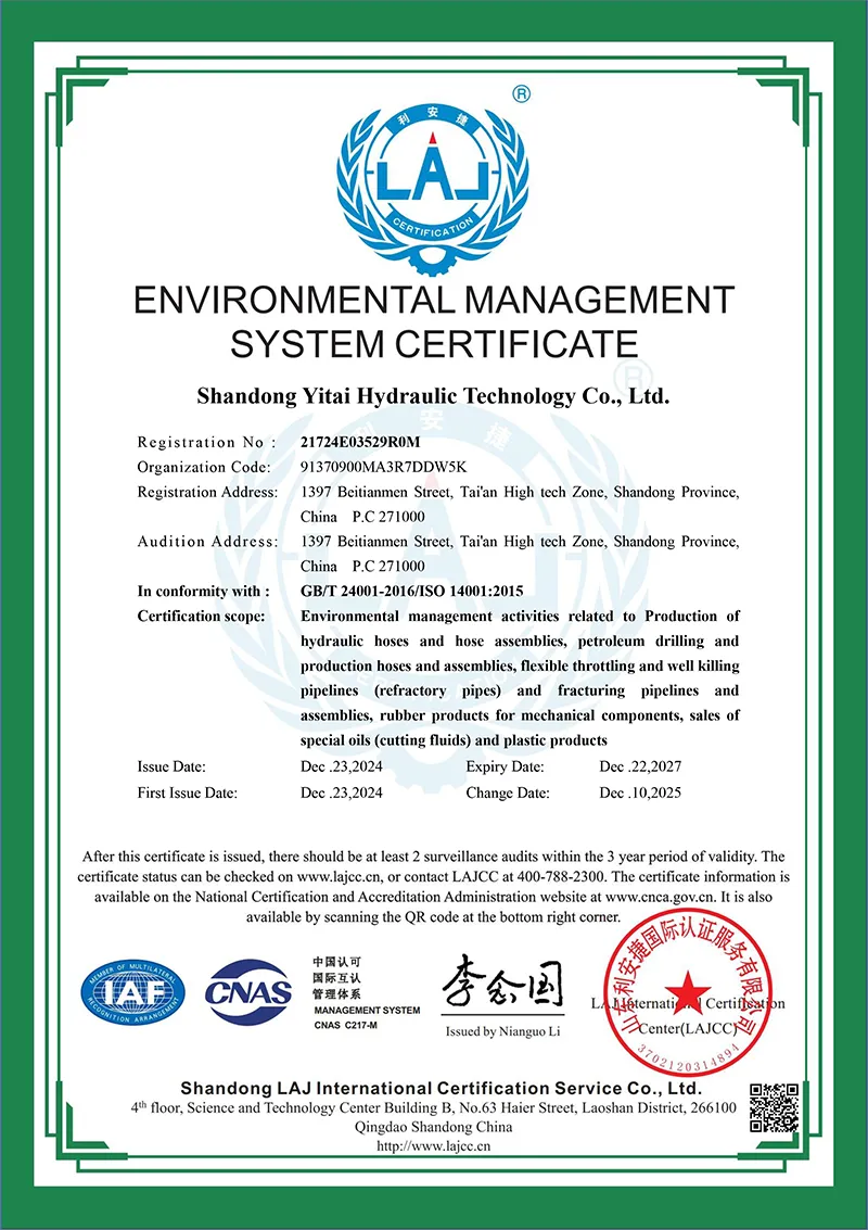การรับรองระบบการจัดการสิ่งแวดล้อม (สอดคล้องกับ GB/T24001-2016 ISO14001: 2015)