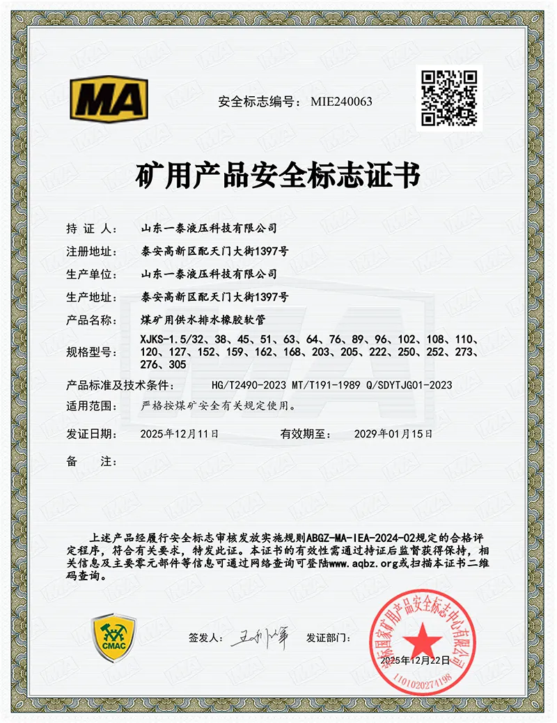 ใบรับรองเครื่องหมายความปลอดภัยของผลิตภัณฑ์การขุดถ่านหิน MA